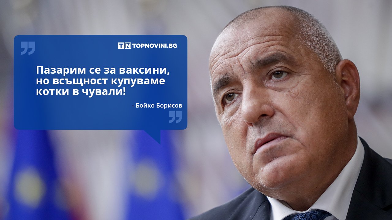 В този момент нещото, което много ме притеснява, е начинът, по който се пазарят тези ваксини - купуваме малко котки в чували“... Нямаме спецификация, нямаме гаранции и в един момент може да се окаже, че имаме за 300 милиона ваксини, а имаме примерно 300 хиляди желаещи и след това трябва да се унищожават, да се изхвърлят, а не може да се препродава“. Думи на премиера Бойко Борисов преди видеоконференцията на членовете на Европейския съвет по въпросите на COVID-19