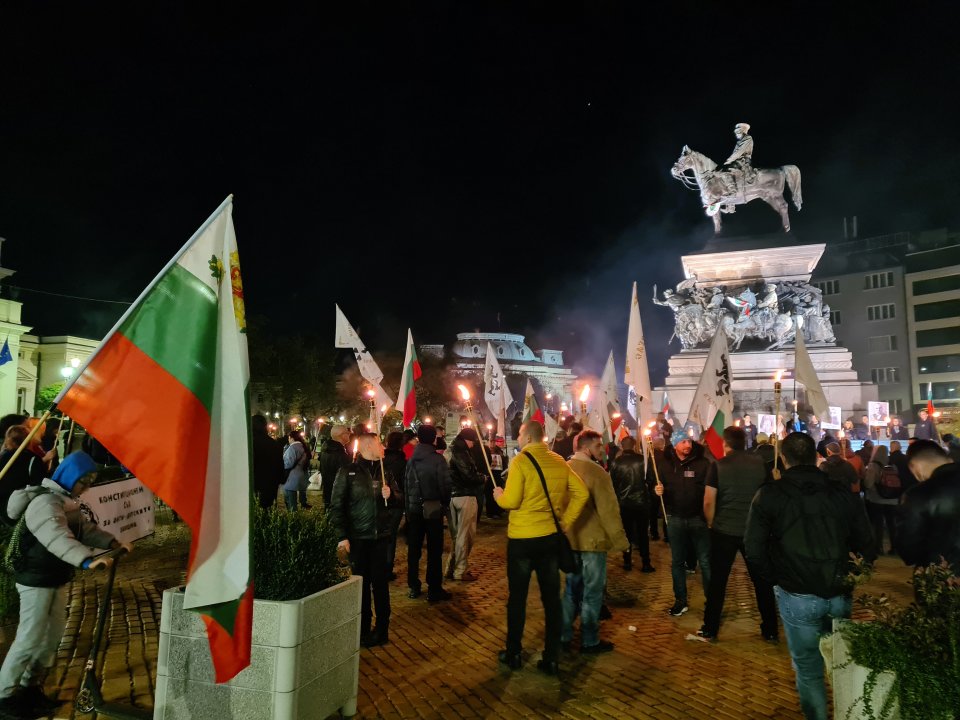 С факли и лозунг "Конституция се прави от експерти, не от политици" и пред ликовете на Петко Славейков, Екзарх Антим I, Тодор Икономов и Петко Каравелов граждани и симпатизанти на партия "Възраждане" излязоха на площад "Народно събрание", а по-късно преминаха и в шествие.