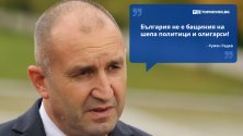 „Три десетилетия след началото на прехода корупцията замени идеологията, а законът все повече се отдалечава от морала...България не е бащиния на шепа безсъвестни политици и олигарси, а общ дом на всички българи... Лозунгът „Мутри, вън“ вещае края на узурпаторите на прехода“. С тези думи президентът Румен Радев се обърна към българите по повод годишнината от началото на демократичните промени у нас.