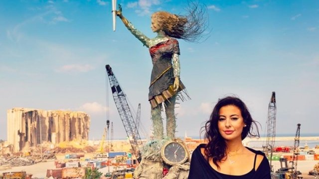 Художничката Хаят Назер, която е силно замесена в Ливанската революцията от 2019 г., използва отломки от експлозията, за да създаде въздействаща скулптура, която отразява болката и надеждите на нацията.