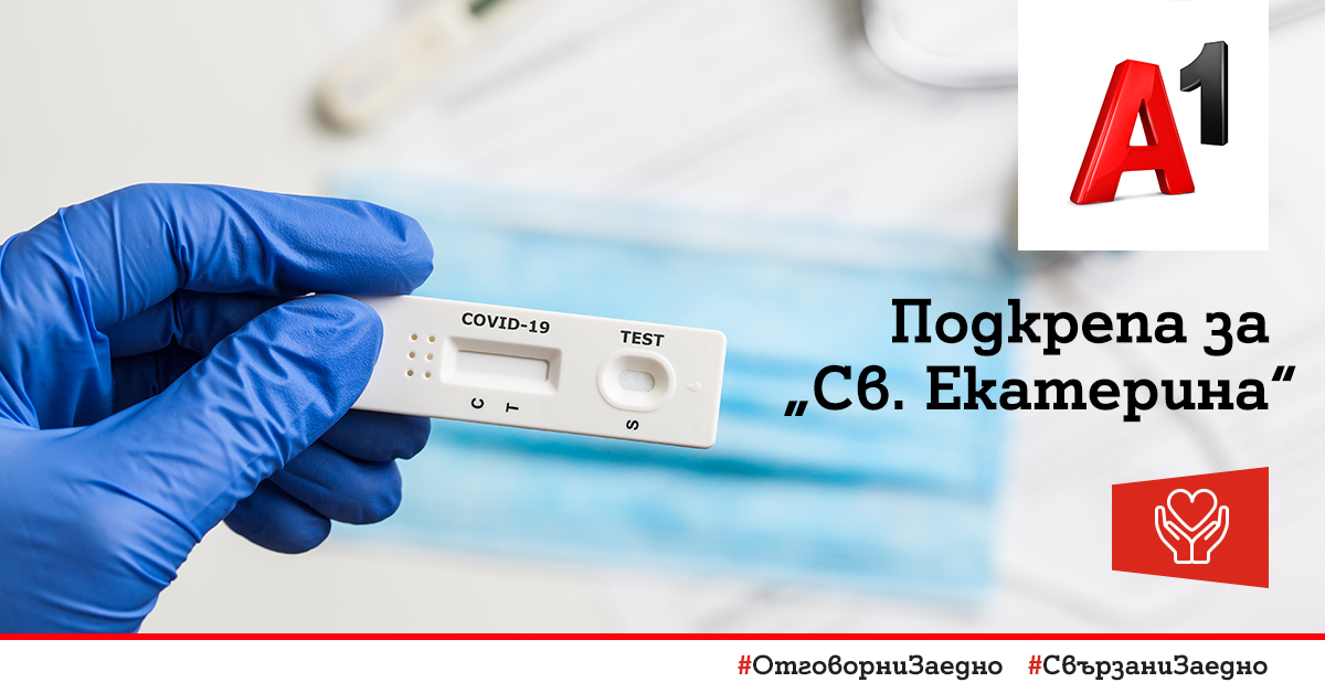 Ново дарение обяви днес А1, като бенефициентът този път е столичната болница УМБАЛ „Св. Екатерина“. Лечебното заведение ще получи 1000 бързи теста за диагностициране на COVID-19. Тестовете са от типа „бърз комбиниран антигенен тест“, като в комплектите са включени тампони за вземане на проби. Това е второто поредно дарение на бързи тестове, направено от А1, като преди това над 3300 бройки получи и Военно-медицинска академия.