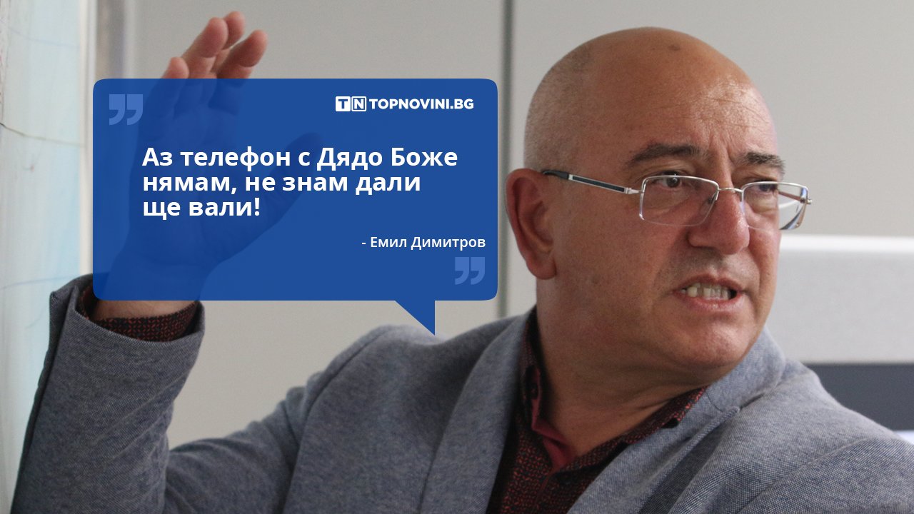 „Аз телефон на Дядо Боже нямам, не знам дали ще вали“. Това заяви екоминистърът Емил Димитров в парламента, където алармира, че ни грози нова водна криза като тази в Перник, този път в Бургас.