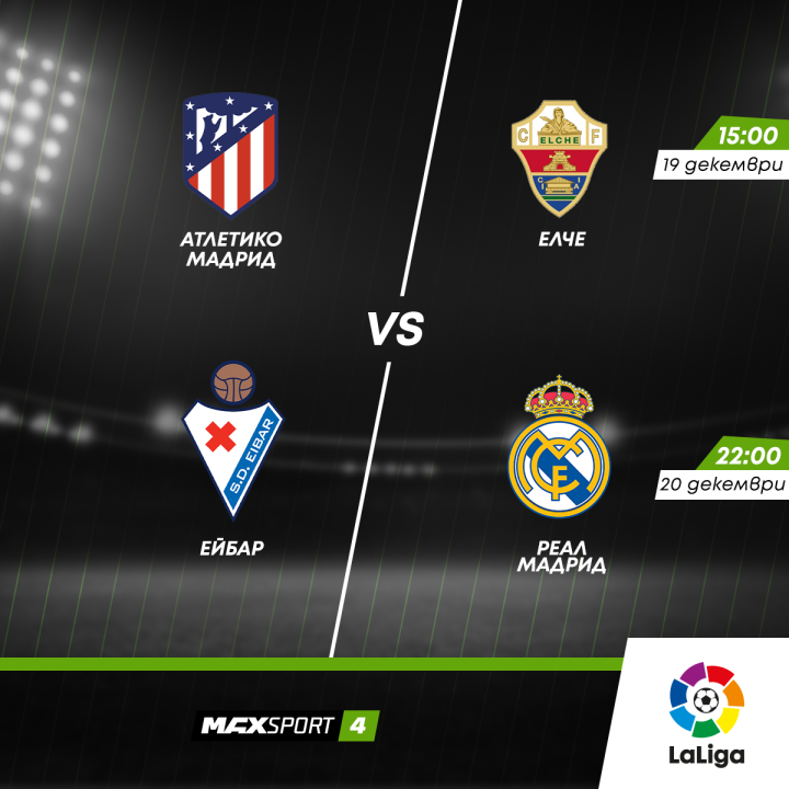 Мадридските грандове Атлетико и Реал имат наглед лесни мачове, като дюшекчиите посрещат Елче в събота от 15:00 часа, а Белия балет гостува на Ейбар в късния неделен мач от 22:00 ч. И двете срещи ще се излъчат пряко по MAX Sport 4.