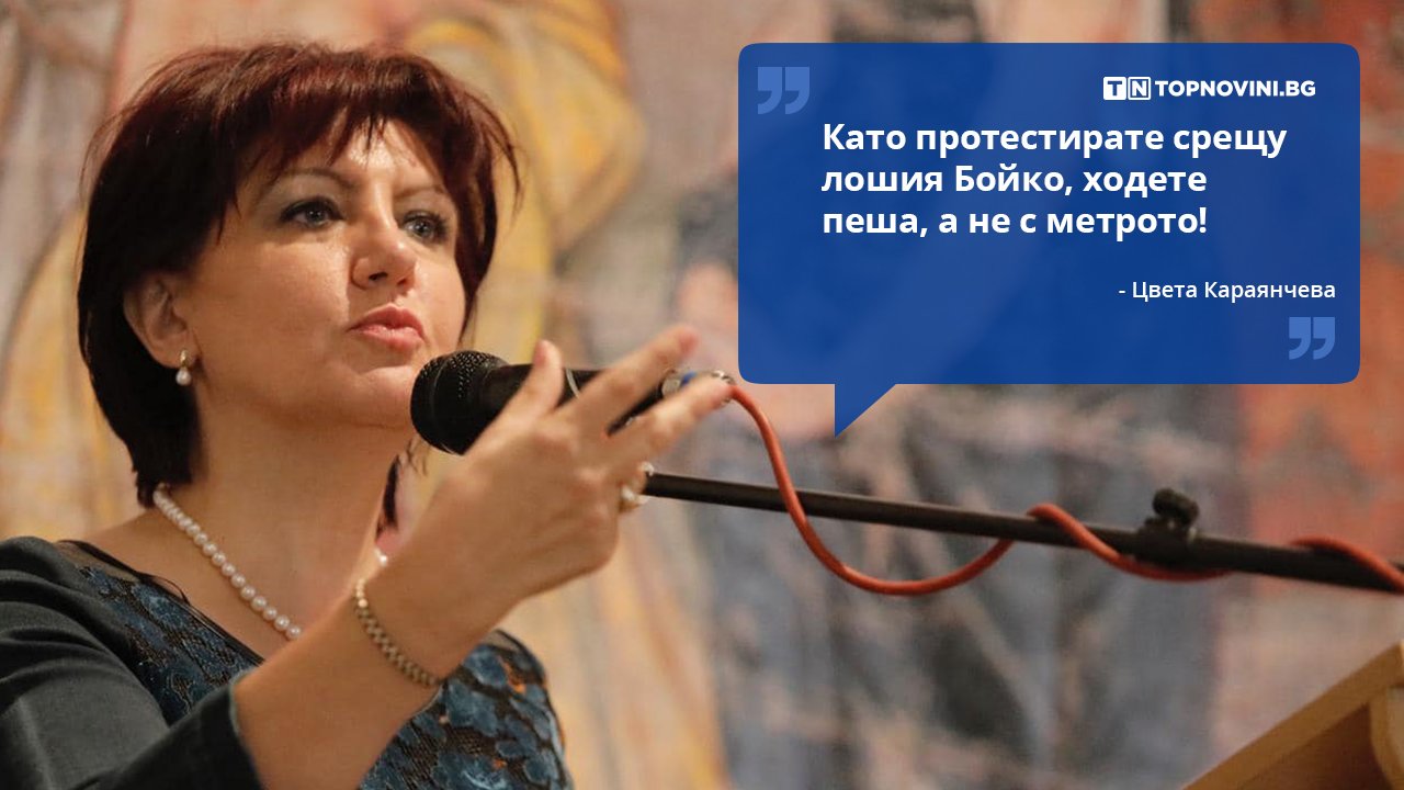 Въпреки, че в изтеклите записи името на Цвета Караянчева се споменава в не особено добра светлина, тя демонстрира забележителна отдаденост на своя партиен лидер. По време на партийно събитие тя съвсем забрави, че е председател на парламента и яростно се нахвърли срещу критиците на правителството. Тя призова всички столичани, които протестират да спрат да ползват "метрото на Бойко", сякаш то е не обществена собственост, а лично притежание на премиера. Кaраянчева блесна и с щедростта си като дари килими трета употреба на театъра в Кърджали, а след това се похвали и с нечуван досега дарителски жест, който лесно може да мине под надслов "Стари календари за старите хора". Думите тук са излишни.