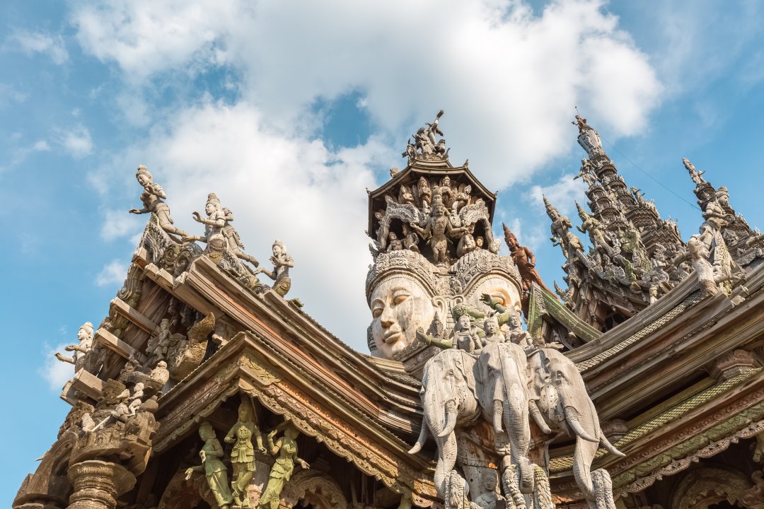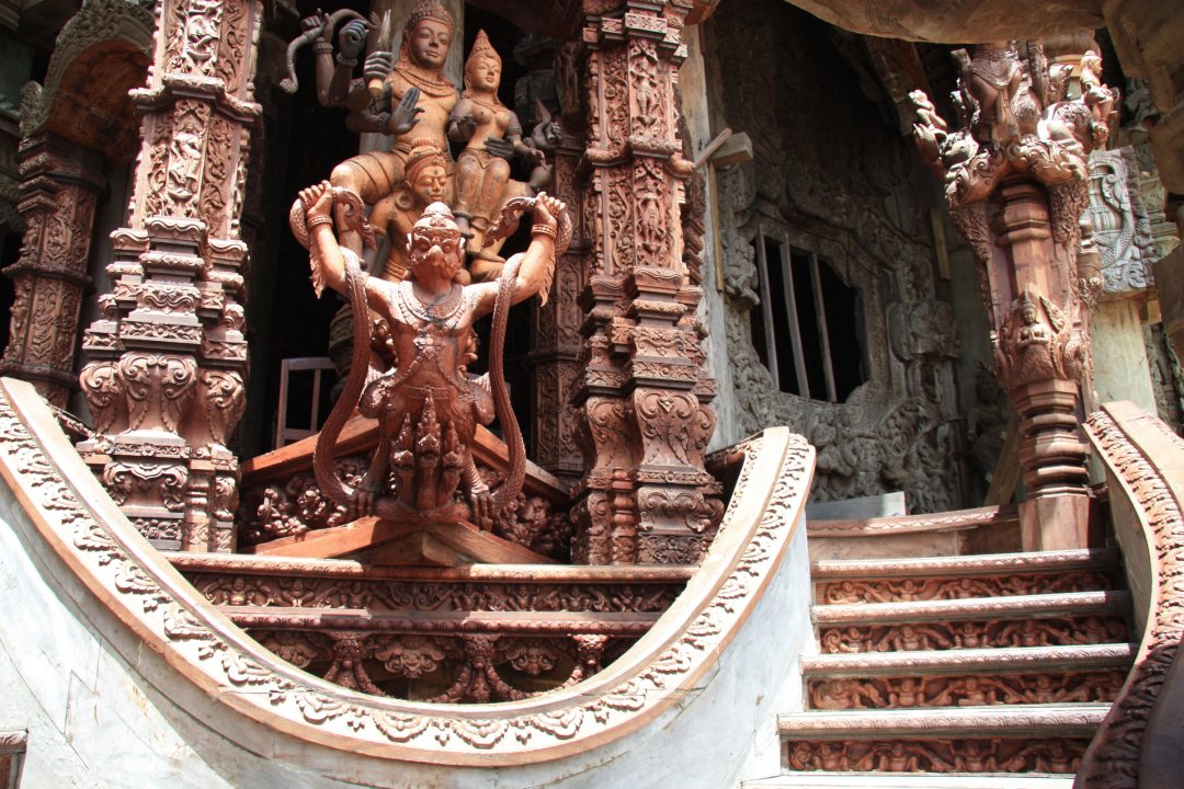Строителството на Светилището на истината на плажа Наклуа в Патай продължава и затова посетителите влизат задължително с каски. Потракването на чуковете им се слива с мистичната музика, а жените, младенците и митологичните чудовище, вперили очи в посетителите от тавана на сградата допълват атмосферата на тайнственост.