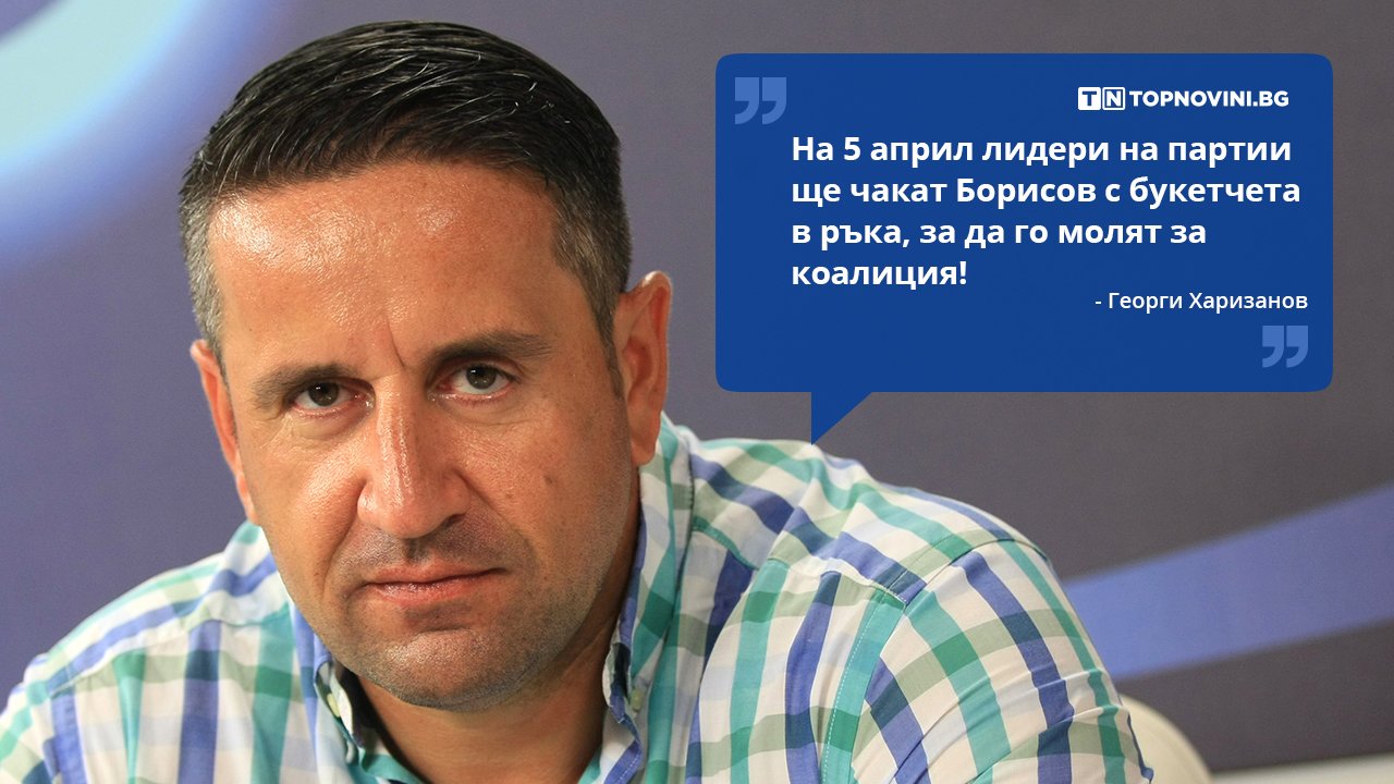 „Не обичам прогнозите, но не виждам как на 4 април ще се случи някаква голяма промяна по върховете на политическия живот у нас. Най-вероятно на 5 април пред балкона на премиера Бойко Борисов ще има лидери на съюзнически партии с букетчета, които ще настояват за коалиция с ГЕРБ. Трябва да видим първо предизборните коалиции и тогава ще можем да коментираме следизборните коалиции“. Думи на политическия анализатор и член на ГЕРБ Георги Харизанов по повод предстоящите парламентарни избори.