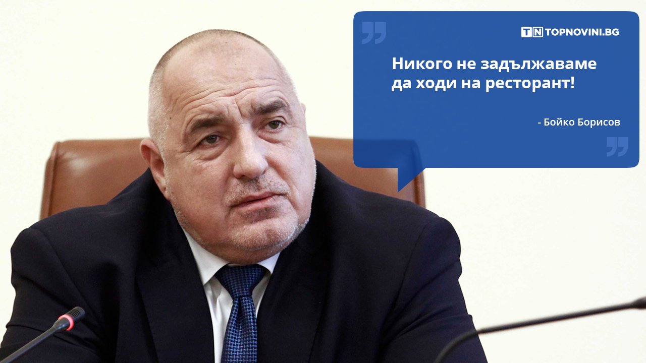 Надявам се, както сме поели ангажимент от 1-ви (бел. ред. да отворят заведенията) да го направим…Това не значи, че трябва масово да се юрнем по ресторантите, но нормалният начин на живот трябва да го запазим. Ние никой не задължаваме да ходи в ресторанта или в мола. Българите са изключително добре информирани…сиреч правото на личен избор. И аз за това разчитам, че дисциплинираният, мислещият, интелигентният народ заслужава ние да се отнасяме по този начин. Да водим нормален живот. Това не означава, че като отворят ресторантите, трябва да се натикате всички“, коментира премиерът Бойко Борисов.