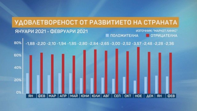 Българските граждани са неудовлетворени от посоката на развитие на страната. Факторите за това са социално-политическата обстановка и справянето с пандемията от коронавирус.