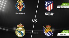 Останалите два претендента за титлата – Атлетико Мадрид и Реал Мадрид, също имат доста коварни мачове. „Дюшекчиите“, чиято преднина на върха пред Реал в последните седмици се стопи до едва 3 точки, гостуват на коравия тим на Виляреал, който, от своя страна, гони място в евротурнирите с временната си 6-а позиция в класирането. Мачът е на 28 февруари от 22:00 часа и ще се излъчи пряко по MAX Sport 4.