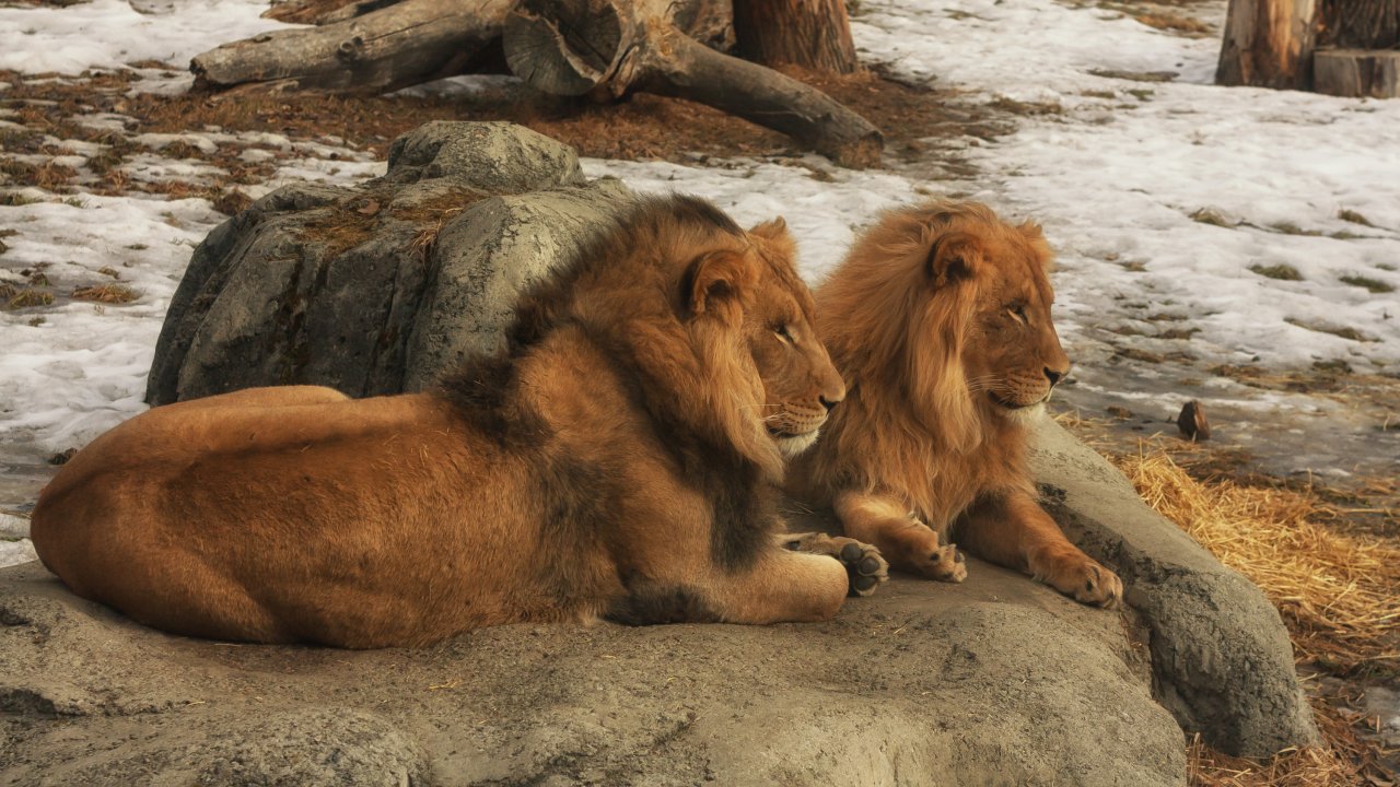 Лъвовете имат нагрети камъни, за да си почиват, както и отопляеми „спални“, които ги приютяват. Клипът показва пазачи, които разбиват тежки преспи сняг, и животните, наслаждаващи се на плодовете на труда им, пише Нова телевизия.
