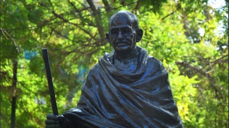 Скулптурата на Махатма Ганди е изработена от бронз и е с височина почти два метра. Неин автор е известният индийски скулптор Рам Сутар - създател и на най-високата статуя в света. Тя е дарена от индийското правителство и е последната от 85 статуи на духовния водач, поставени по повод 150-ата годишнина от рождението му. На откриването ѝ миналата година присъства и посланикът на Индия у нас Пуджа Капур.