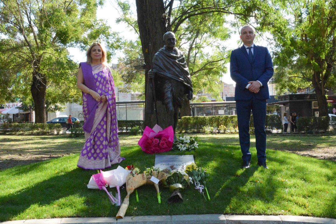 Пространството, избрано за поставянето на паметника, не е случайно, а именно градинката пред Градската художествена галерия. Махатма Ганди е бил духовен учител и вдъхновител за художника Борис Георгиев, чието име носи галерията. Двамата се срещат през далечната 1931 г. на кораба „Пилстна“ на път за Индия.