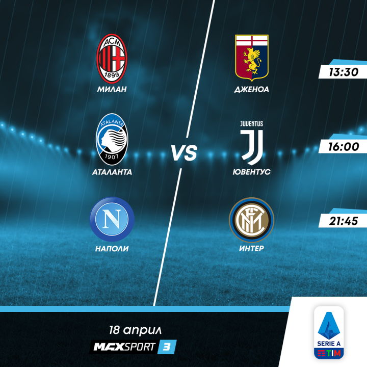 Веднага след края на този двубой, от 16:00 часа, четвъртият Аталанта посреща третия Ювентус, като разликата между двата тима е едва една точка в полза на „бианконерите“.