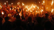 В 13.55 ч. българско време бе измолен Благодатният огън в Йерусалим, съобщиха от Светия Синод. Всяка година благодатният огън бива измолван от Йерусалимския Патриарх Теофил III.