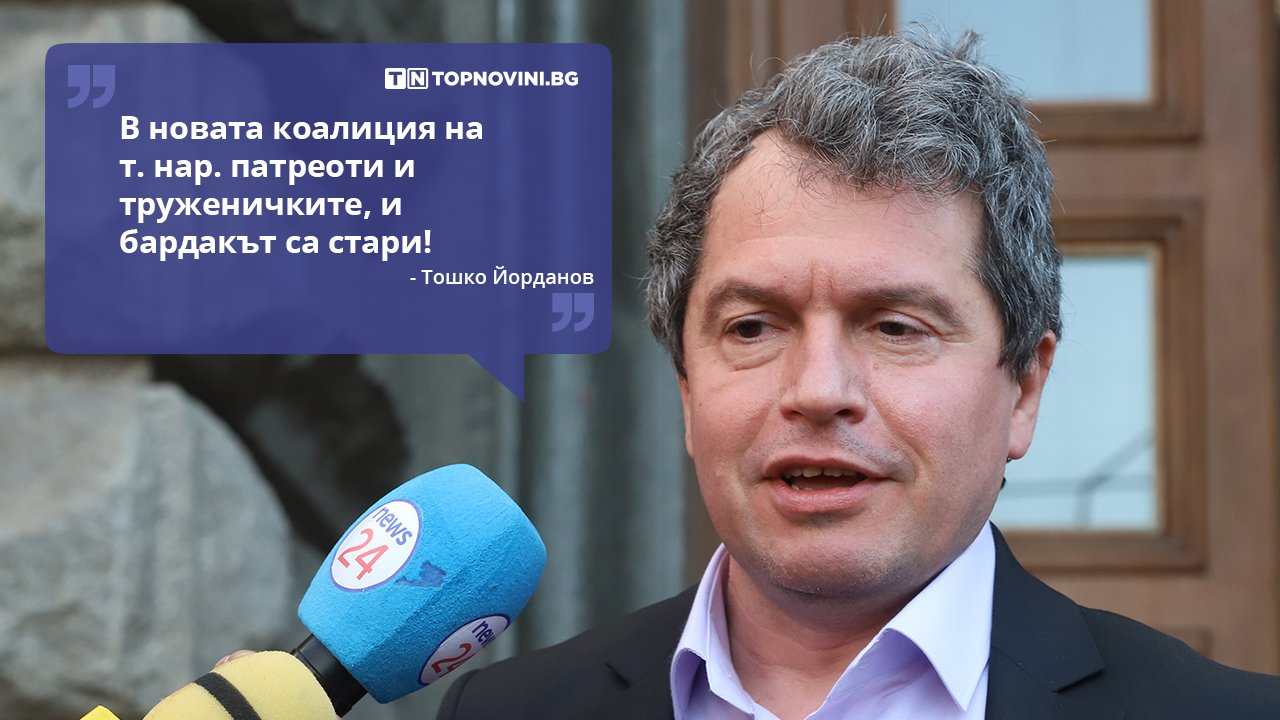 „Днес имаше една жалка политическа сватба по сметка. Сватбата беше на така наречените патреоти - ВМРО, Воля и НФСБ. Там са все отбор юнаци - Валерката Симеонов, Каракачанов и Марешки, който е на едно дело от едно добре охранявано място. Има един израз - нов бардак със стари... там нали се сещате какво, не се прави. В случая обаче и труженичките са стари, и бардакът е стар. Много ми беше смешно днес като казаха, че една от основните им цели била да не влиза ДПС в управлението, при положение, че точно те в последните четири години управляваха точно с ДПС.“ С тези думи Тошко Йорданов от „Има такъв народ“ коментира новината, че ВМРО, НФСБ и „Воля“ ще се явят заедно на предсрочните избори.