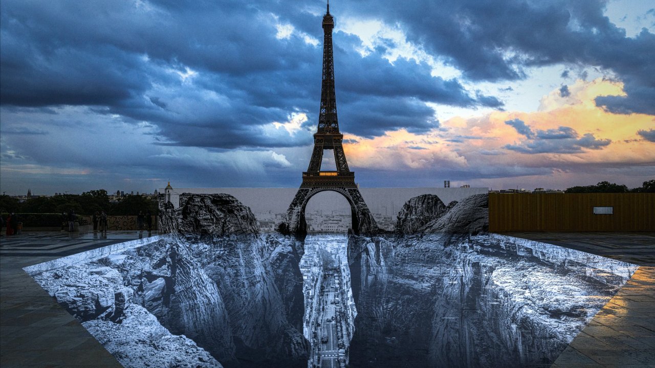 Художник създаде каньон в подножието на Айфеловата кула в Париж благодарение на оптична илюзия.