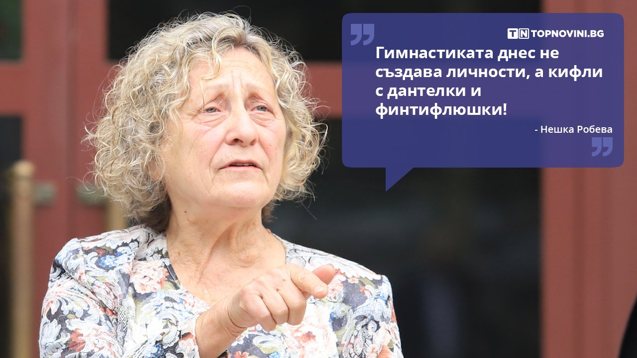 „Някъде прочетох, цитирам по памет древен философ, че най-голямата мъка е да имаш много знания, а да нямаш на кого да ги предадеш. Аз имам много знания в областта на художествената гимнастика. Абсолютно не съм ги предала. Това не е спортът, който аз съм правила, който харесвам, не е смисълът на спорта, заради когото аз съм влязла. Някакви кифли се носят, мамите ги харесват. Пък камъни, пък дантелки, пък финтифлюшки... Но истинският спорт, който създава личности... вече не го виждам. Съжалявам“. Това коментира легендарната треньорка по художествена гимнастика Нешка Робева навръх 75-ия си рожден ден.
