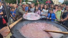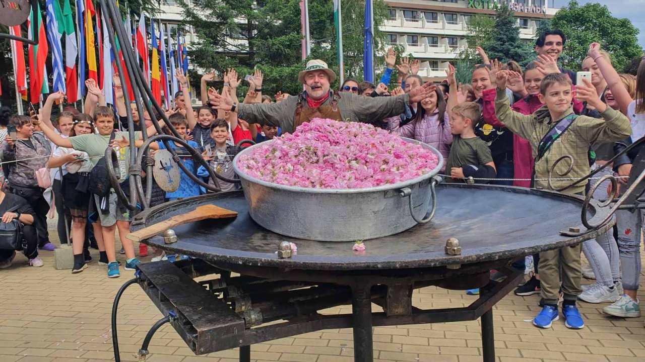 Едно от най-големите и най-вкусни шоута направи Ути Бъчваров, като заедно с кметицата Галина Стоянова измислиха и уникална вкусотия, която оттук нататък да се превърне в запазена марка на празника. Само си представете огромния тиган на Ути, в който с участието на баби от читалищата, възпитаници на професионалните гимназии и пред очите на хиляди усмихнати хора, които се бяха събрали, се свари най-голямото сладко от рози.