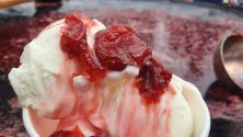 Бяха почистени над 10 000 листчета и после смесени със захарен сироп, 50 кг вкусни български ягоди и малко настърган джинджифил за свежест. Получи се нещо уникално, както казват младите, топинг един път! И бяха раздадени 1500 кофички, в които имаше истински вкусен ретро сладолед – онзи, който помним от детството си. Чиста сметана и нищо друго обагрена във всички нюанси на червеното и розовото от невероятното сладко от рози и ягоди.
