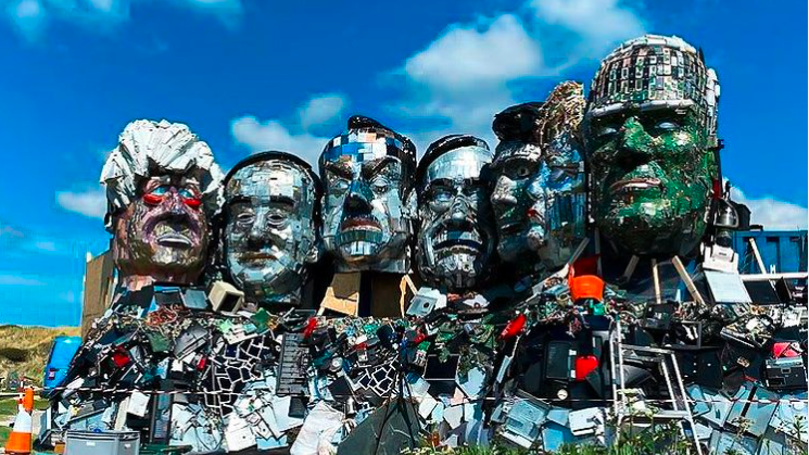 Художниците Джо Ръш и Алекс Рекидж създадоха скулптура с лицата на лидерите от Г-7 от електронни отпадъци, предаде „Ройтерс“. Тя е наречена „Връх Рисайкълмор“ и се издига в Корнуол, Великобритания, където утре започва срещата на Г-7.