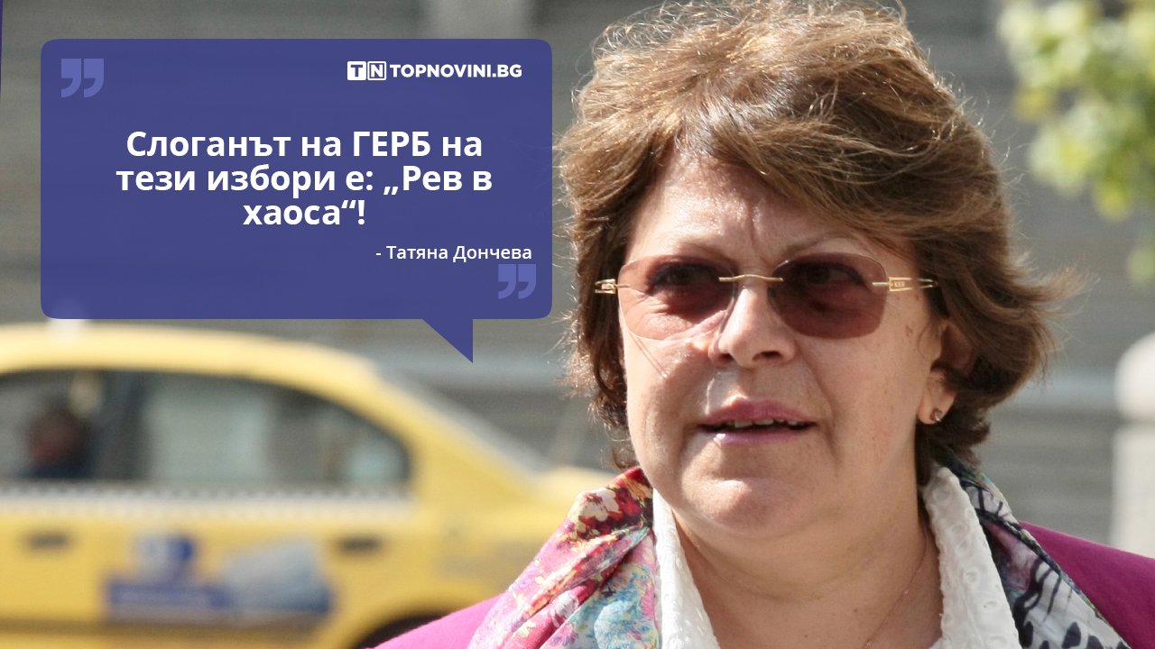 „Слоганът на ГЕРБ на тези избори е: „Рев в хаоса“. Тези ще реват до края на света и наша работа е, въпреки рева, да се върши това, което трябва... Те реват, заплашват, но това са възможностите им, това е липса на достойнство, с което да се приемат и победата, и поражението. Това, че някои хора са изглеждали по-огладени, по-европейци на фона на мутрите, е само външно впечатление. Те са еднакви по манталитет хора“. Това коментира Татяна Дончева от „Изправи се! Мутри вън!“ в интервю за „Клуб Z“.