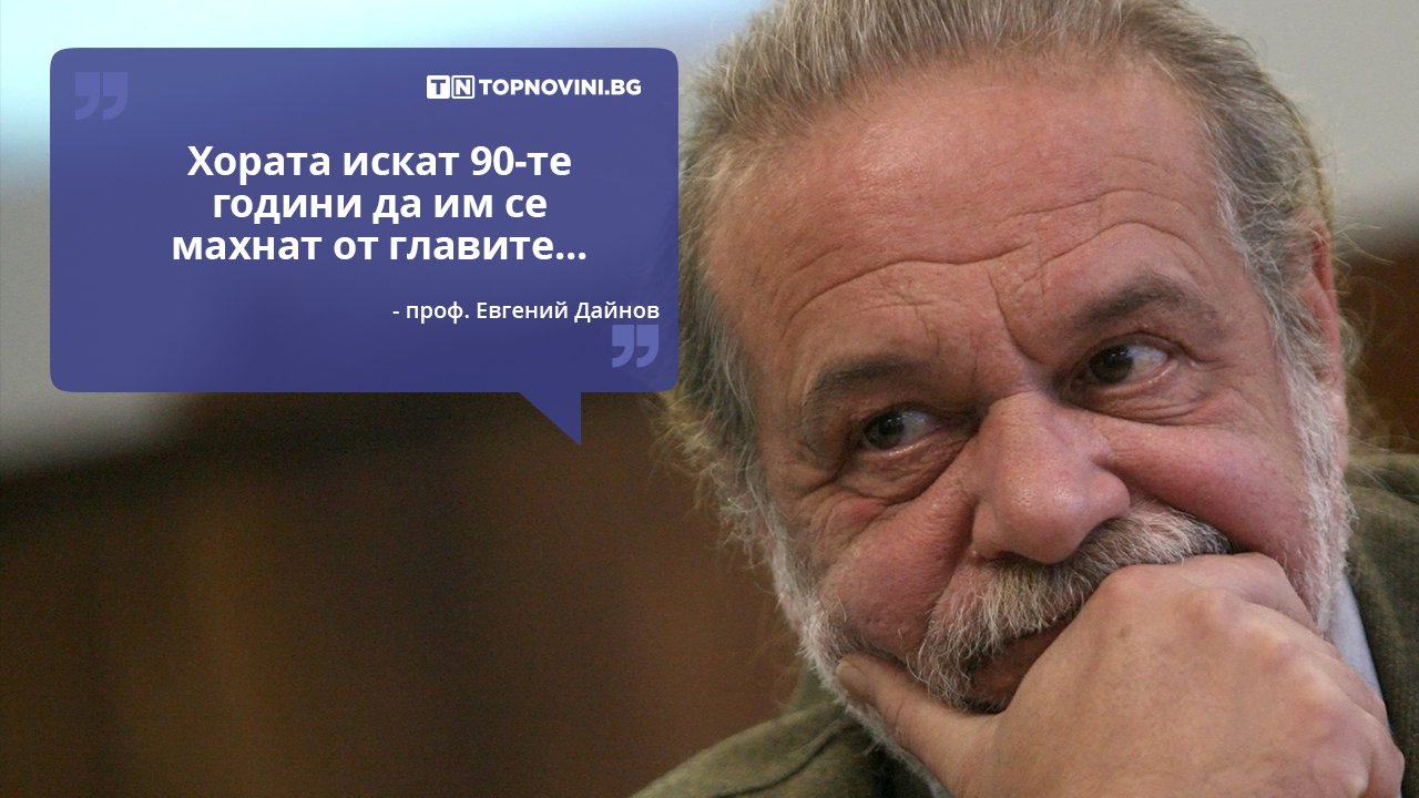 „Хората искат 90-те години да им се махнат от главите наесен... С протестите от миналата година българското общество се опита да изцеди от себе си всичко, свързано с уродливите форми на политика и властване, наследени от 90-те години“. Това заяви политологът проф. Евгений Дайнов по повод годишнинната от началото на антиправителствените протести срещу бившите управляващи.