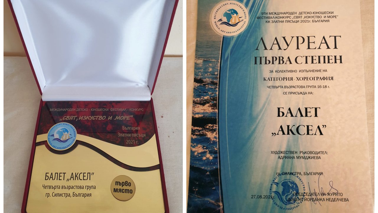 Модерен балет „Аксел“ към ОДК - Силистра с хореограф Адриана Мумджиева участва в IX Международен детско-юношески фестивал конкурс „Свят, изкуство и море“, който се проведе от 24 до 27 август 2021 г. в КК Златни пясъци. За отличното си представяне школата беше отличена с първо и второ място.