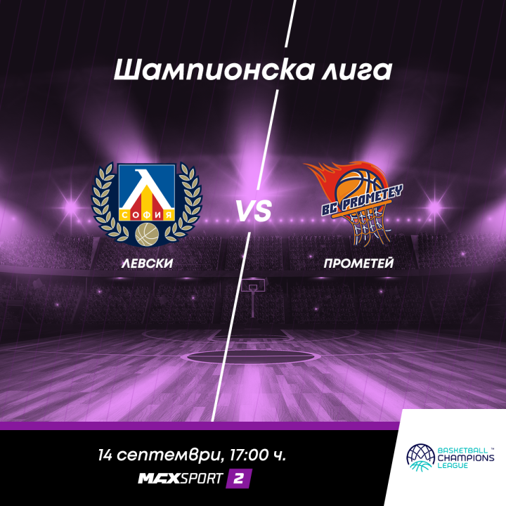 Левски започва своя поход в европейските клубни турнири на 14 септември с двубой срещу украинския БК Прометей. Феновете на спорта могат да гледат квалификацията за Шампионската лига по баскетбол в прякото предаване на MAX Sport 2 oт 17:00 ч. Спортните канали на А1 ще излъчат всички двубои от квалификационния турнир, който ще се проведе в столичната „Арена Армеец“, включително и финала на 18 септември.