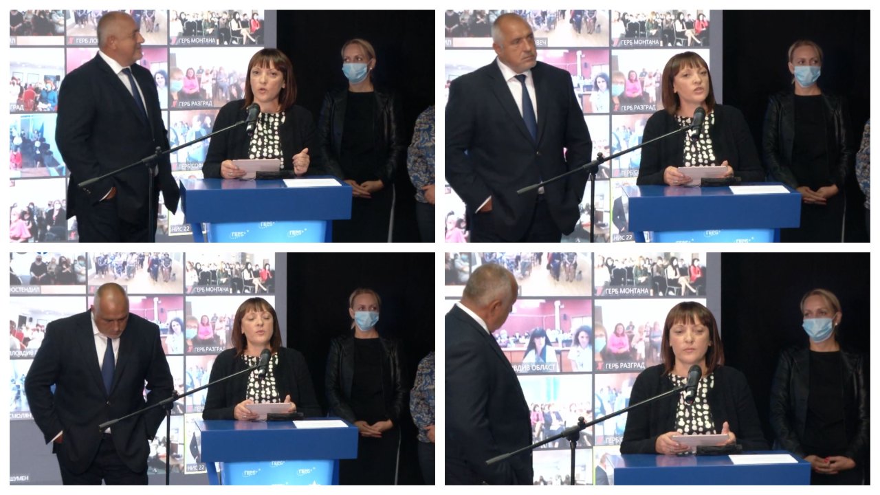 Самият Борисов обаче през цялото време изглежда разсеян и явно не успява да оцени по достойнство речта ѝ. Несвикнал да седи на втори план, той очевидно скучае - върти се в кръг, погледът му блуждае и се разсейва с екраните зад него, където греят лицата на нежната част от ГЕРБ.