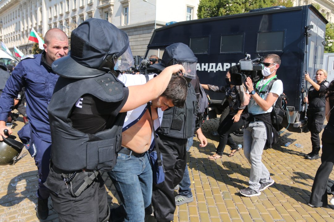 П.Д. завежда иск за 5000 лв. срещу СДВР и срещу жандармерията, тъй като не е ясно чии служители са му причинили вредите. Мъжът твърди, че на 2 септември 2020 г. по време на участието му в мирна демонстрация в София на площада между сградите на БНБ и парламента, заедно с други граждани се опитал да премине по посока на Военния клуб. Тогава му бил нанесен побой по гърба и задното бедро от обградилите го петима жандармеристи, които го повалили на земята. Други протестиращи успели да го издърпат и той, заедно с други лица лежал на земята в замаяно състояние. Тогава един от жандармеристите се приближил и от около 20 см разстояние изпразнил в лицето му цял флакон със сълзотворен спрей.