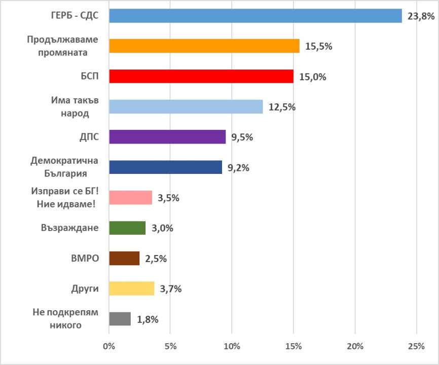 БСП е постигнала мобилизация на електората си, каквато не е имала отдавна. Това се дължи на самочувствието на социалистите, че са незаобиколим фактор при съставяне на следваща управленска конфигурация. Партията няма особен ресурс, обаче, да разширява влиянието си до края на кампанията. Когато се коментира електората на БСП, трябва да се спомене и това, че 44% от избирателите на тази партия се страхуват от заразяване с КОВИД в деня на вота, а една трета се притесняват от машинното гласуване.