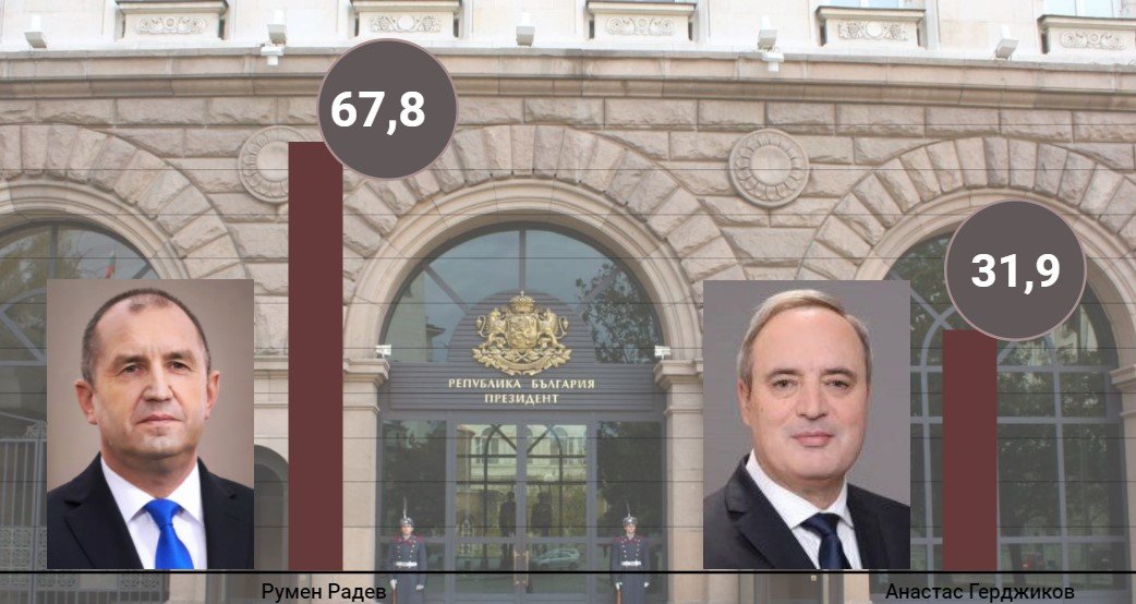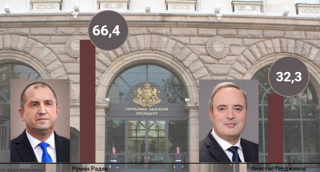 Данните от паралелното преброяване на социологическите агенции показват, че Румен Радев печели втори мандат на „Дондуков“ 2. Радев има преднина пред опонента си Анастас Герджиков с над 30%. Балотажът се проведе при рекордно ниска избирателна активност.