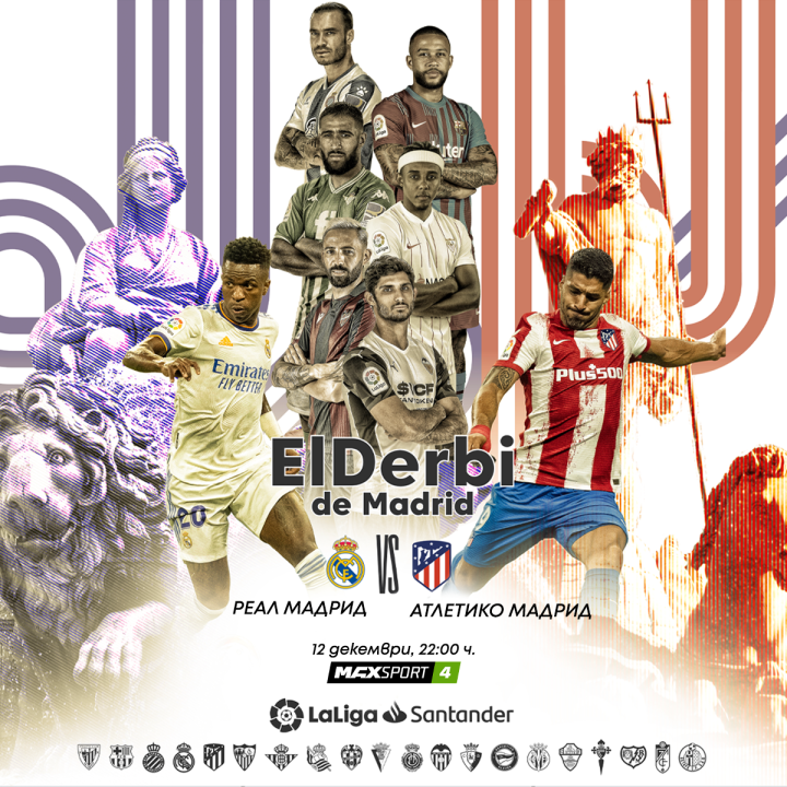 Голямото дерби на Мадрид между Реал и Атлетико ще е акцентът в програмата на MAX Sport през този уикенд. Двата непримирими съперника се изправят един срещу друг в неделя вечер от 22:00 часа и сблъсъкът им ще бъде предаван пряко по MAX Sport 4.