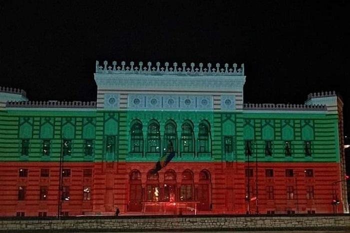 Vijećnica je večeras osvijetljena bojama zastave Republike Bugarske, prve zemlje koja je na današnji dan 1992. priznala nezavisnost Bosne i Hercegovine.