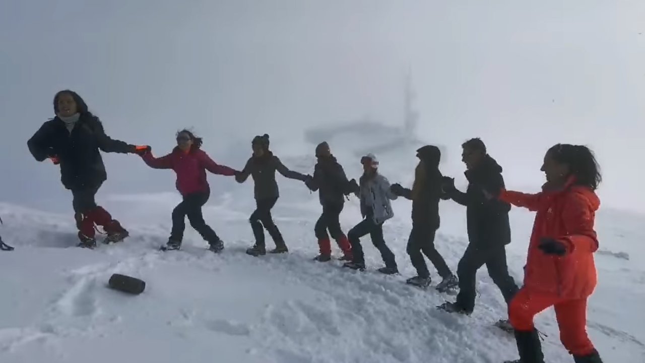 От планинския клуб споделиха в социалните мрежи клип как танцуват ганкино хоро (бел.ред. което е известно като „Бяла роза“, защото най-често се изпълнява на песента със същото име).