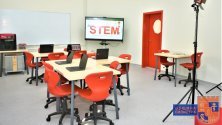 Дигитални и бинокулярни микроскопи, интерактивни тъч дисплеи, Chromecast устройства и устройства, съвместими с приложенията за виртуална и добавена реалност, 3D принтер, видео и звукозаписна техника за заснемане на ученическите проекти, лабораторни уреди и комплекти по химия и физика са само част от обзавеждането на изцяло преобразените в модерни творчески пространства обикновени класни стаи на третия етаж на училището.
