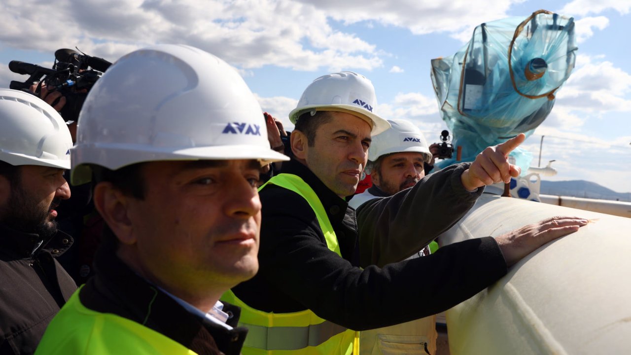 Министър-председателят Кирил Петков инспектира изграждането на междусистемната газова връзка Гърция-България в района на град Комотини.