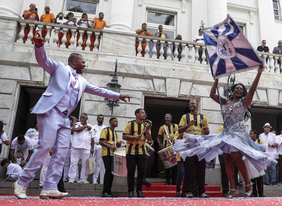 Кметът на Рио де Жанейро Едуардо Паес връчи символично ключа на града на карнавалния крал Момо. Така самбодромът отново завибрира в ритъма на ударните инструменти с хиляди танцьори с блестящи костюми и платформи, високи колкото жилищни сгради, пише „Дейли Мейл“.