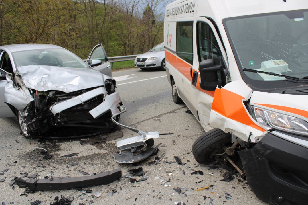 Има двама пострадали, жената, пътувала до шофьора на леката кола и фелдшерът от пристигналата на мястото линейка, която също се е ударила.