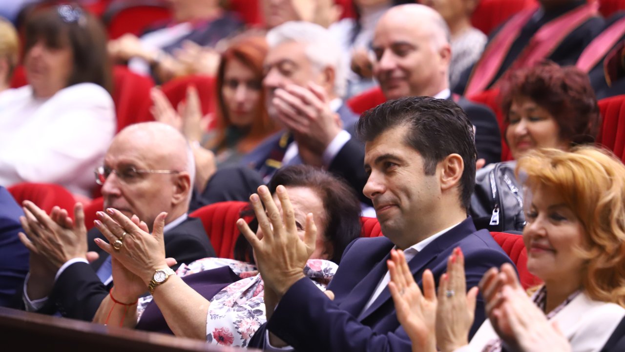 Премиерът Кирил Петков присъства лично на церемонията в УНСС, на която Кристалина Георгиева получи почетното звание „Доктор хонорис кауза“.