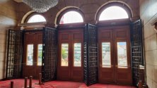 Триметровите метални врати, които приличат на решетки, са поставени на централния вход на сградата, който се ползва при официални и тържествени случаи. Сградата, която е построена през 1884 г. и е паметник на културата от национално значение, за първи път е осигурена по този начин, въпреки, че в последните 30 г. неведнъж е имало опити за нерегламентирано влизане в нея по време на протести.