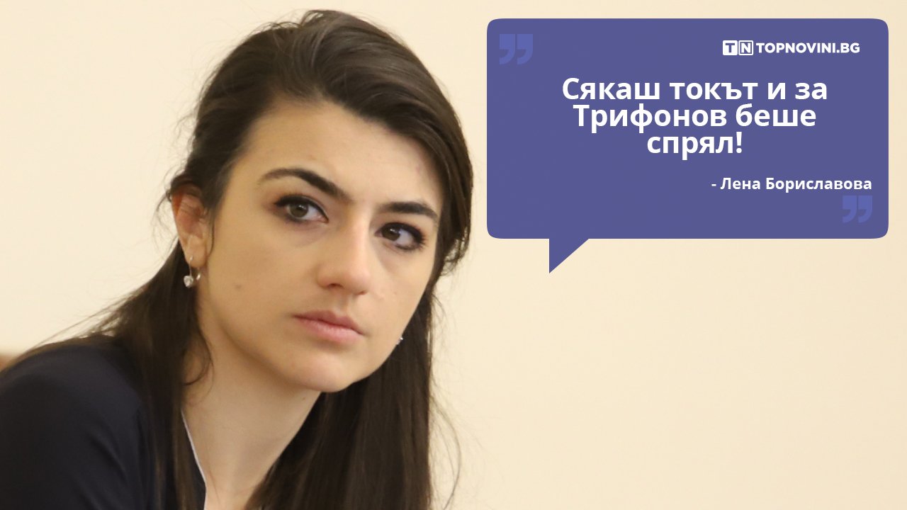 „Трифонов днес положи неимоверни усилия да се разграничи от проверката на „Капитан Андреево“. Той като Борисов сякаш му е бил спрял тока и не е бил запознат със случващото се“. Така говорителят на кабинета Лена Бориславова коментира интервюто на лидера на „Има такъв народ“ Слави Трифонов, след като той обяви, че партията му се оттегля от коалицията. Бориславова направи аналог с първата реакция на новината от страна на бившия премиер и лидер на ГЕРБ Бойко Борисов, който обяви, че не знае какво се случва с управлението на страната, защото нямал ток.