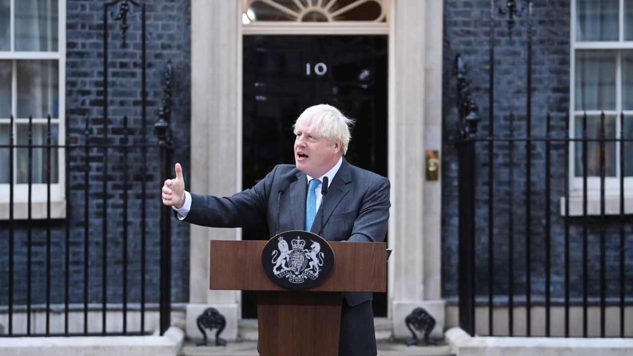 Рано сутринта пред Даунинг стрийт 10 в присъствието на доста негови съпартийци и верни привърженици Борис Джонсън каза просто: „Това е, хора! След около два часа ще бъда в Балморал, Шотландия, за да видя кралицата и щафетата ще бъде предадена на новия лидер на консерваторите и премиер, който ще намери зад тази врата фантастичен екип от държавни служители – хора, които изпълниха Брекзит, които извършиха най-бързото масово ваксиниране в Европа, които организираха ранно доставяне на оръжие за героичните украински въоръжени сили”.