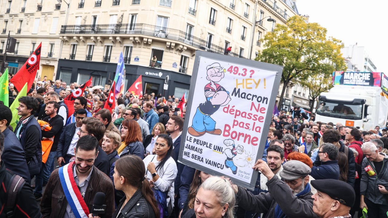 В неделя хиляди хора излязоха по улиците на Париж, за да протестират срещу скока на цените. Лидерът на крайната левица на Жан-Люк Меланшон марширува заедно с тазгодишната носителка на Нобелова награда за литература Ани Ерно. Тогава Меланшон призова обща стачка за вторник.