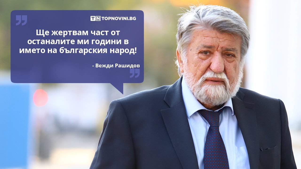 „Аз лично на тези години, след като съм бил 2 пъти министър, дълбоко в душата ми се искаше да се отдам на внуците си...Ще жертвам част от моите останали години в името на българския народ“. Това каза Вежди Рашидов в първото си изявление като председател на Народното събрание.