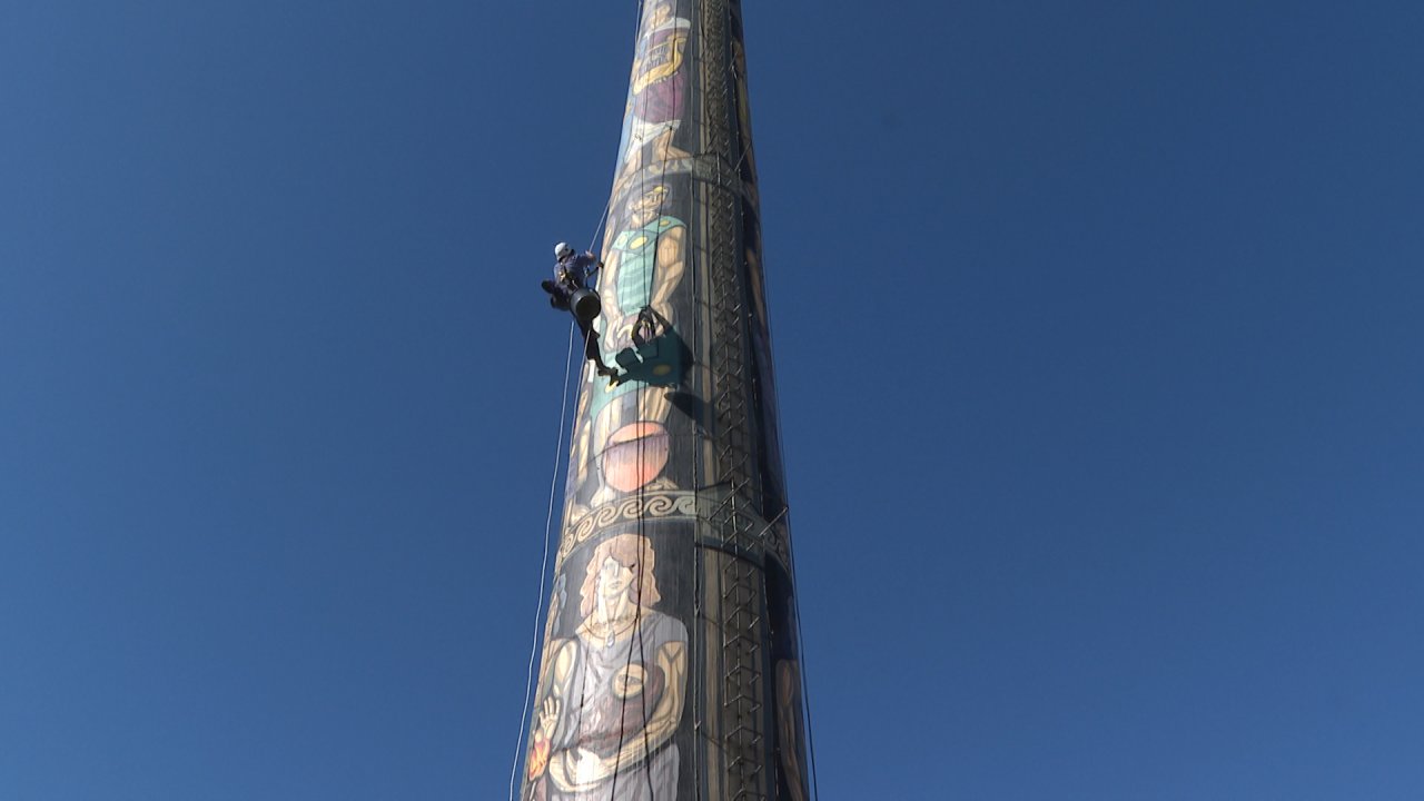 Бизнесмен и художник превърнаха ненужен производствен комин в Дряново в енциклопедия по история. Произведението на изкуството е единствено по рода си у нас, а заради начина на изрисуване е и кандидатура за „Гинес“.