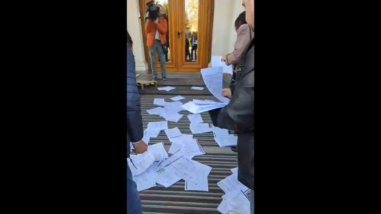 Активисти на формациите разпръснаха копия на сгрешени протоколи от последните избори, в които се използваха хартиени бюлетини. Такива копия получиха и депутати, предаде БНР.