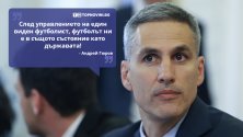 „За съжаление след 12-годишното управление на един доста виден футболист в крайна сметка българският футбол е в същото състояние, в който е всеки друг отрасъл в българската икономика“. Това обяви шефът на парламентарната група на „Продължаваме промяната“ Андрей Гюров по време на днешното пленарна заседание, на което депутатите отново се занимават с промените в Изборния кодекс.