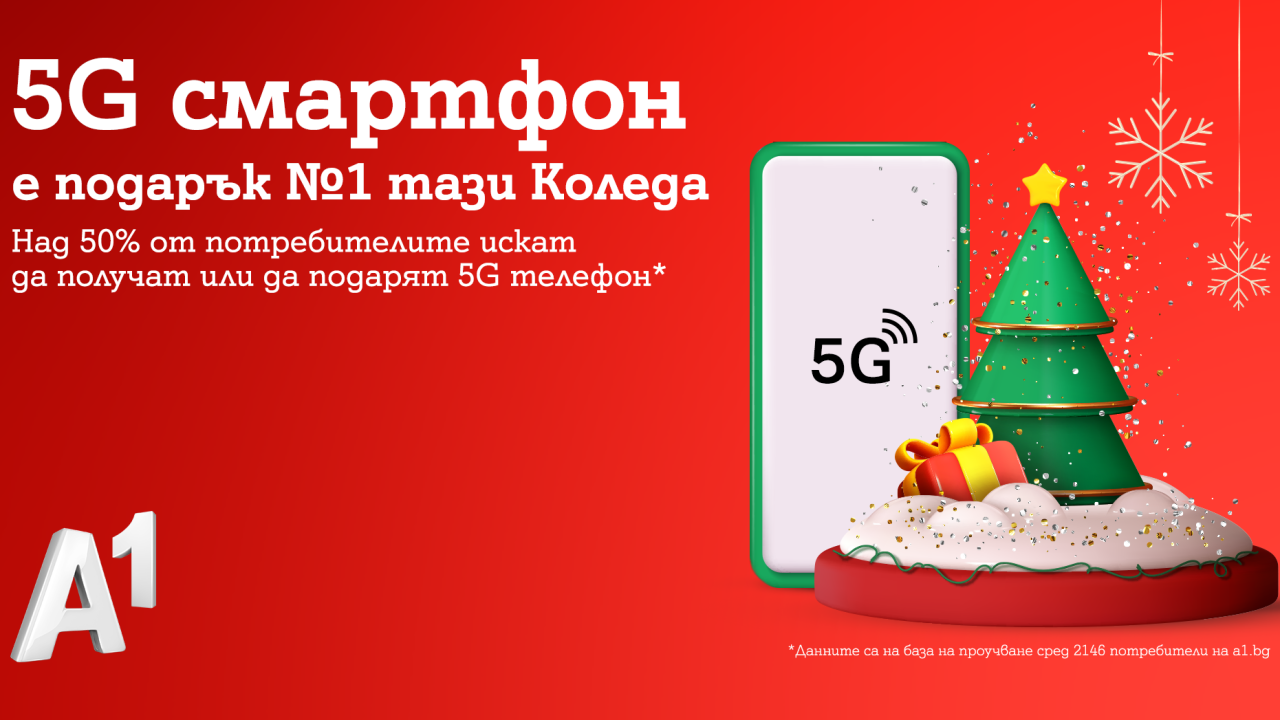 Тази Коледа най-желаните подаръци са технологичните, показва непредставително проучване сред 2 146 потребители на A1. За втора поредна година 5G смартфоните са най-желаният подарък (58%), а веднага след тях се нареждат смарт телевизорите с 12% и таблетите със 7%.