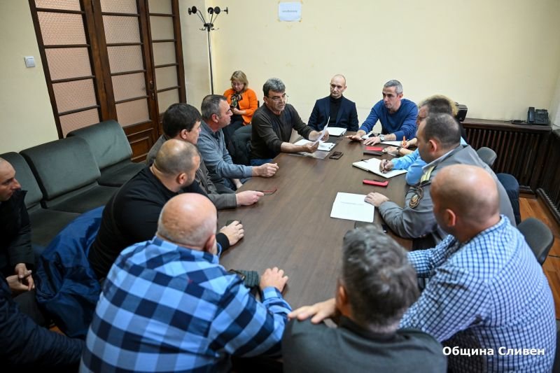 На заседанието присъстваха кметове на населени места от община Сливен, които влизат в 10-километровата зона, определена със заповед на областния управител, зам.-кметът Камен Костов, д-р Веселин Василев – гл. инспектор „Здравеопазване на животните" към Областната дирекция по безопасност на храните /ОДБХ/, началникът на РПУ Борис Борисов и гл. инспектор от сливенската пожарна Апостол Апостолов. Кметовете на населените места трябва да информират стопаните, че в случай на обезщетения, трябва да представят удостоверения за регистрация. За нерегистрирани дребни преживни животни няма основание за отпускане на обезщетение, чийто размер се определя от държавен оценител.